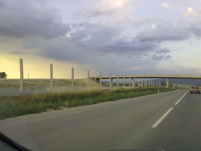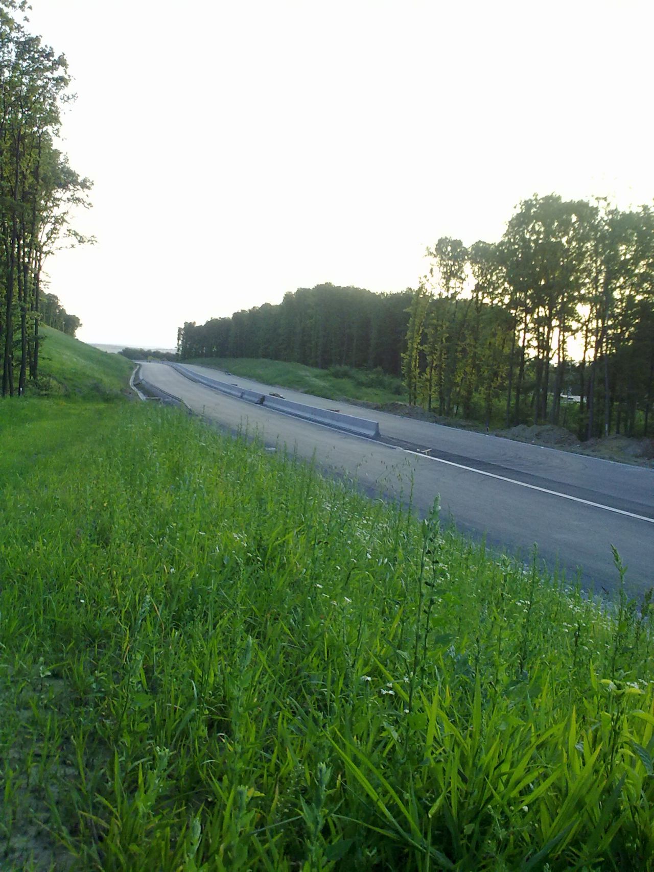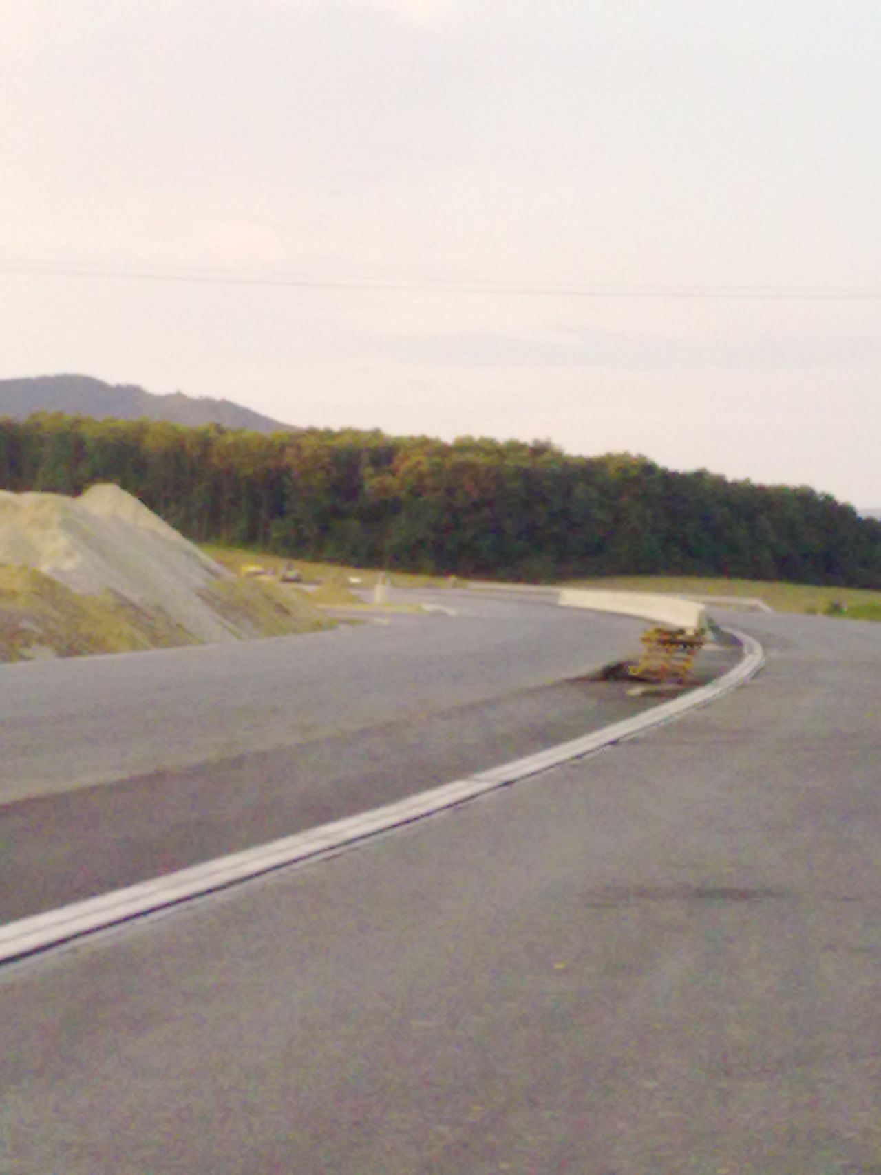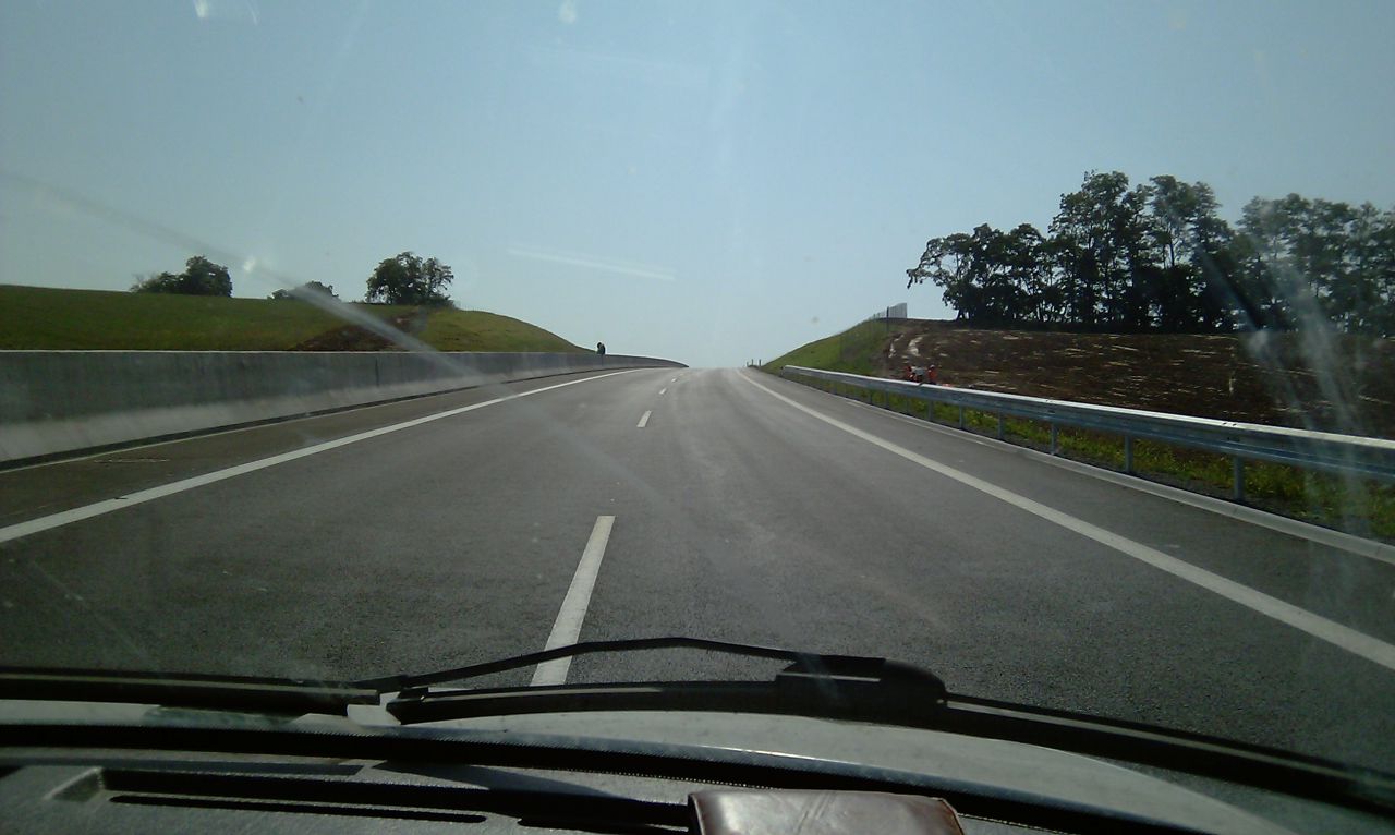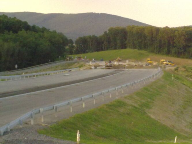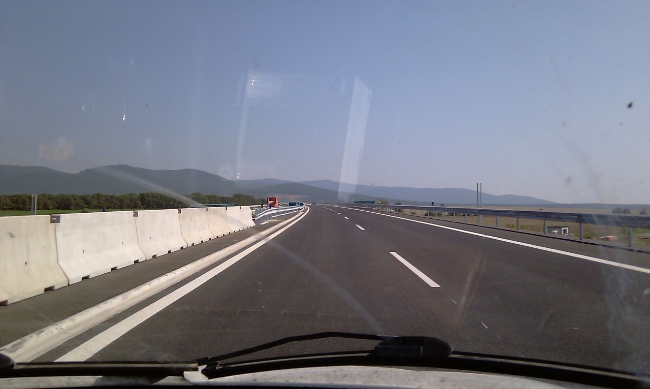 Večerné foto úseku medzi MÚK Čaradice a odpočívadlom Tekovské Nemce. Betónové zvodidlá sú už vybudované, AB kryt položený aj polprofile ZV-NR