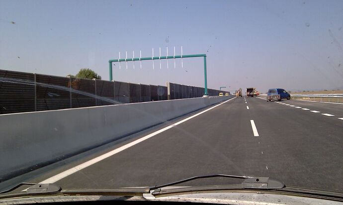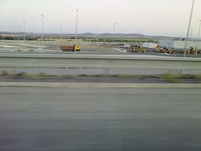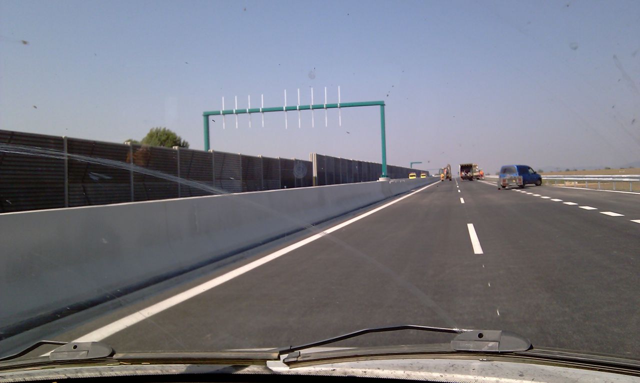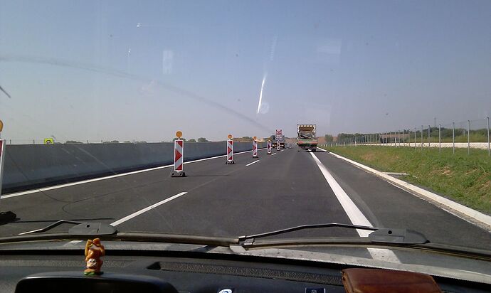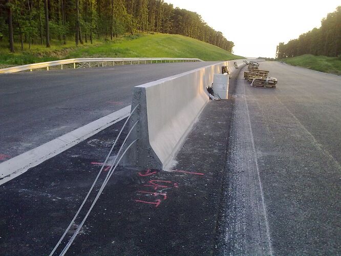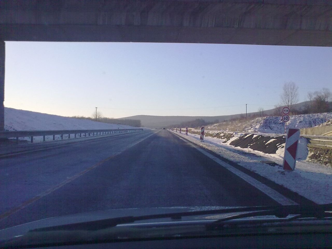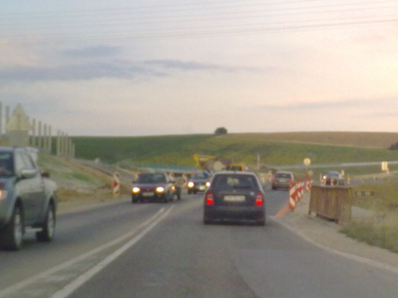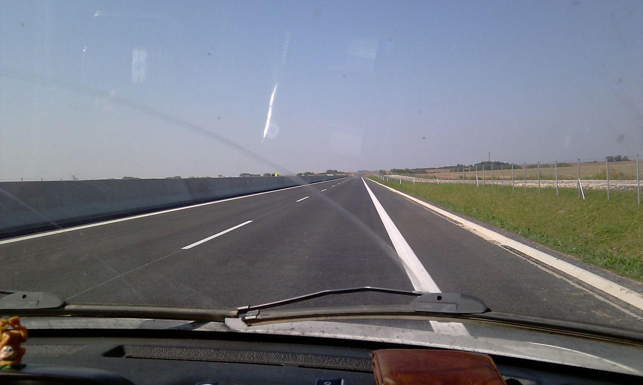 Večerné foto úseku medzi MÚK Čaradice a odpočívadlom Tekovské Nemce. Betónové zvodidlá sú už vybudované, AB kryt položený aj polprofile ZV-NR
