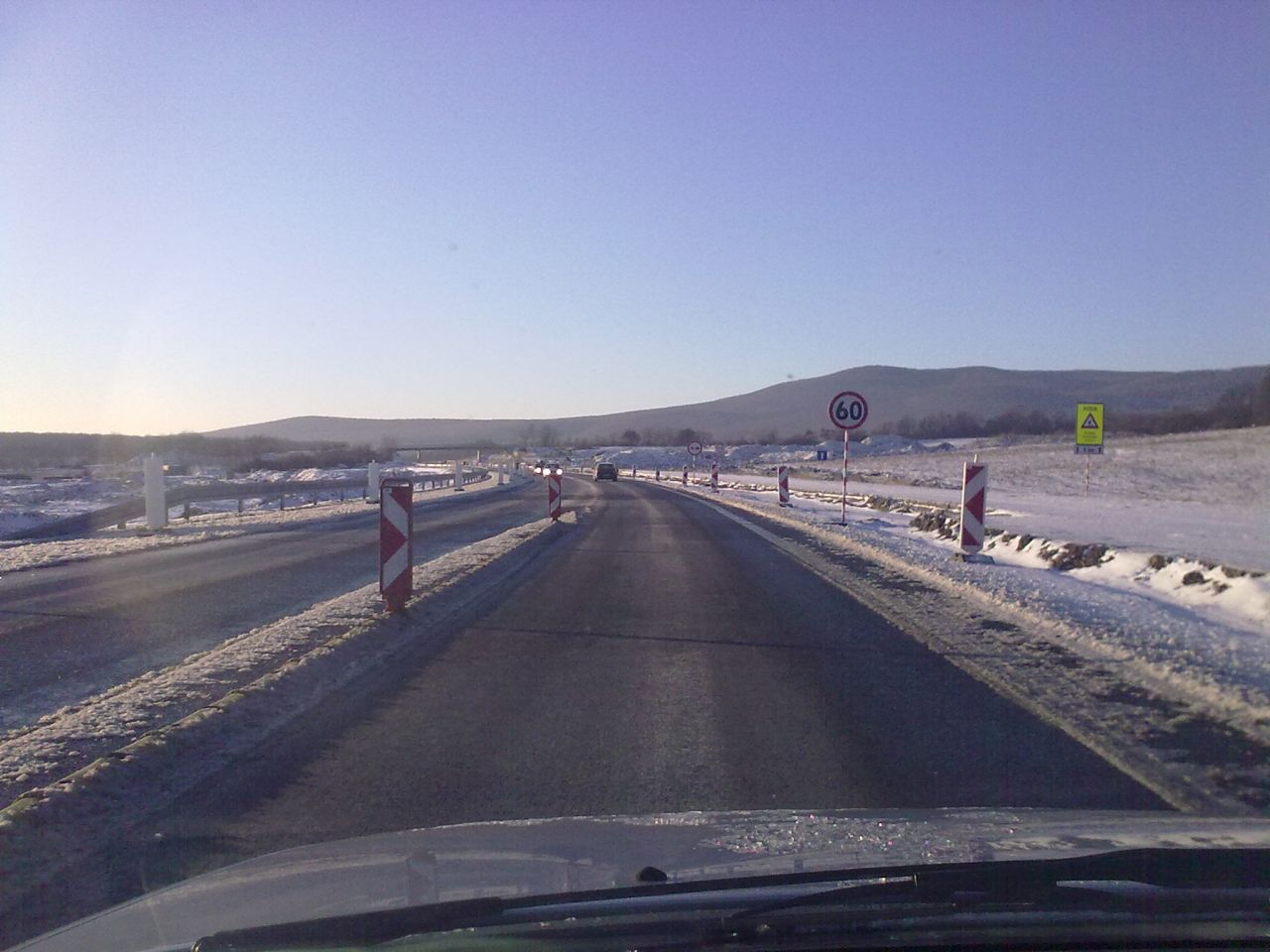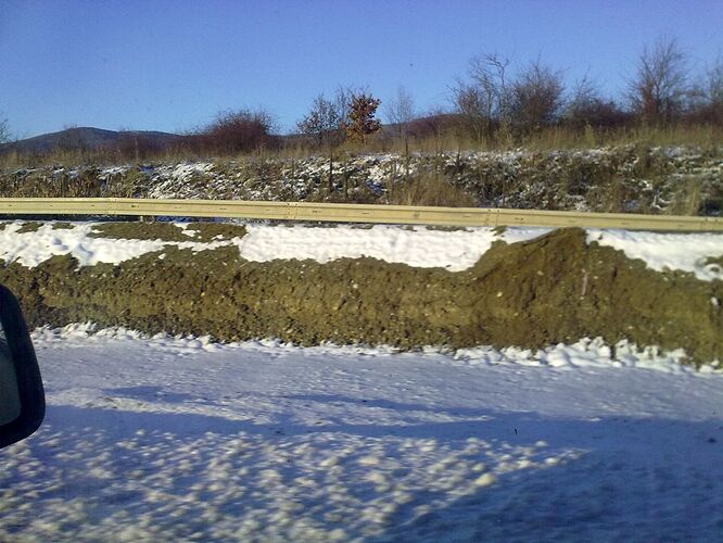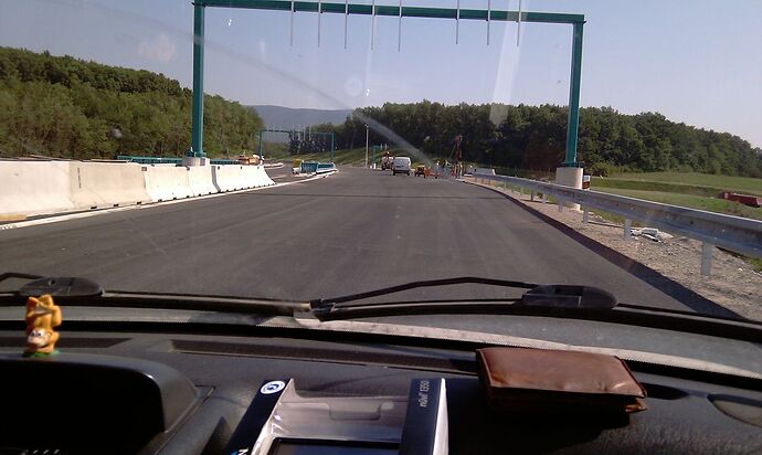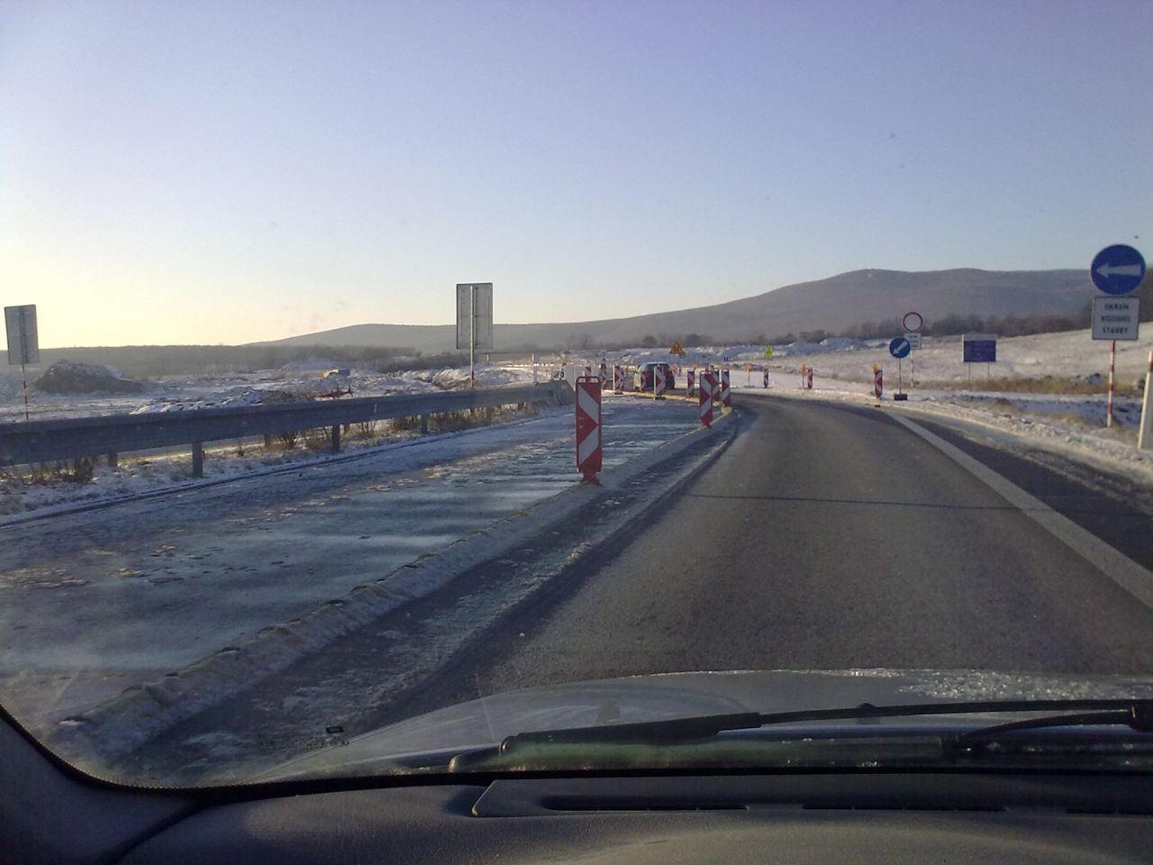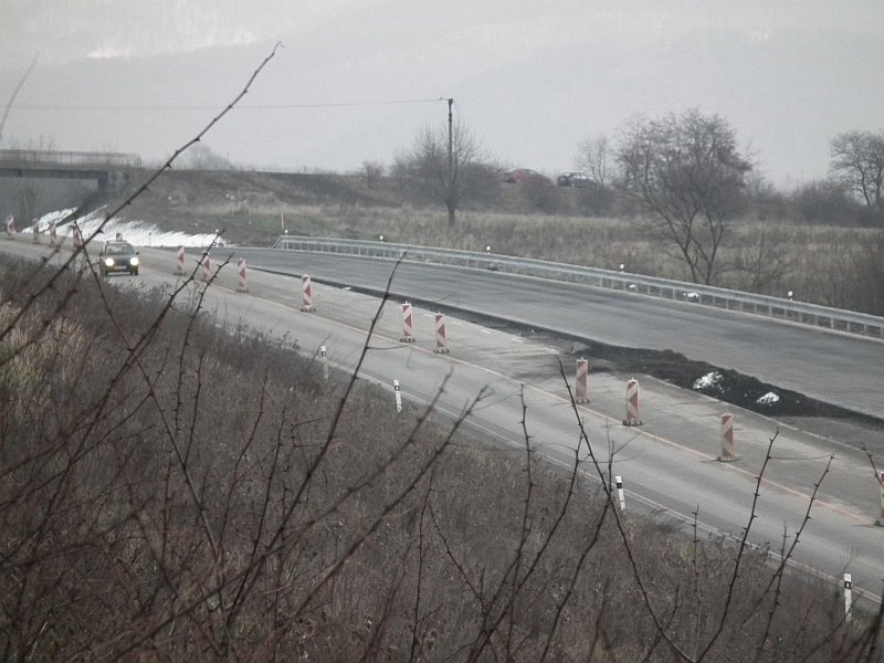 Nová časť R1 sprjazdnená od polovice decembra, čím bola zrušená obchádzka cez čaradice. Na pravo pôvodná cesta, vidno výškový rozdiel.