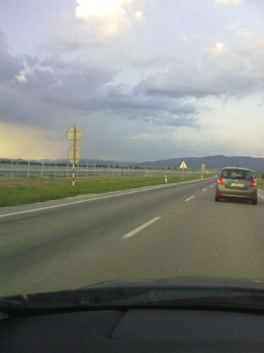 smer BB, za MUK Tesarske Mlynany. pri viniciach Č. Kľačany. premenlive znacenie je po oboch stranach. je vidiet aj zaliv na nudzove zastavenie.