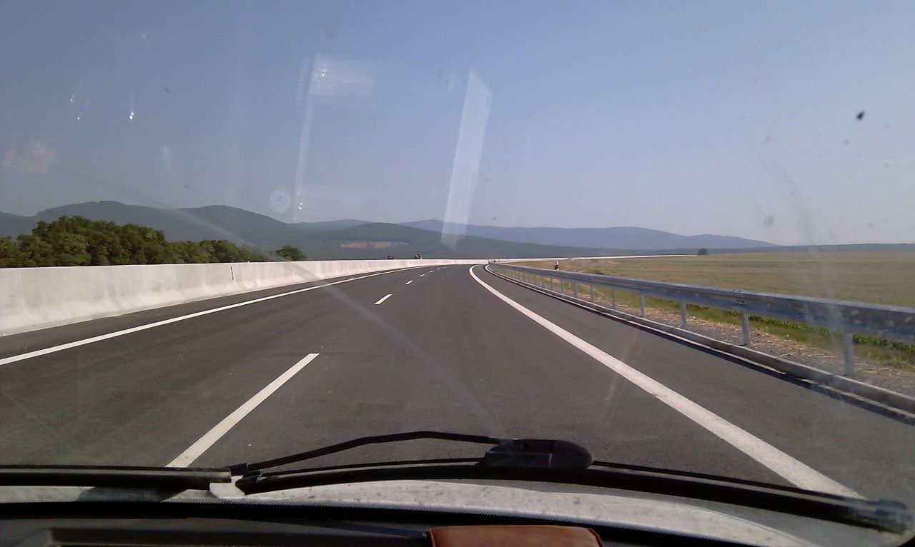 Kúsok pred budúcou križovatkou Čaradice. Napravo je pôvodná cesta I65