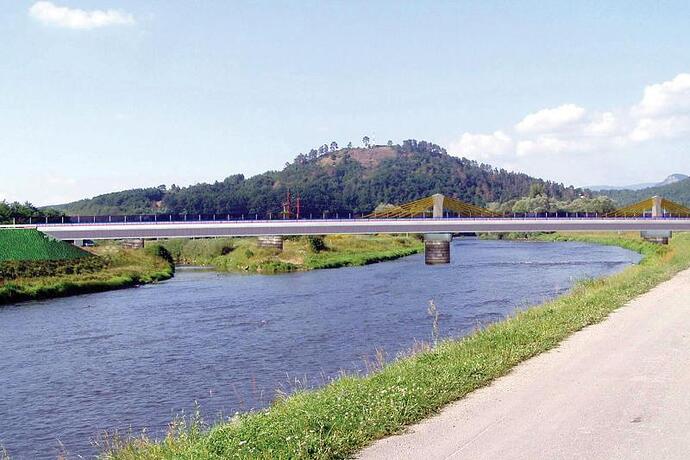 Vizualizácia najväčšieho mostného objektu – mosta C210 cez rieku Hron. Most sa vyznačuje zaujímavým technickým riešením.