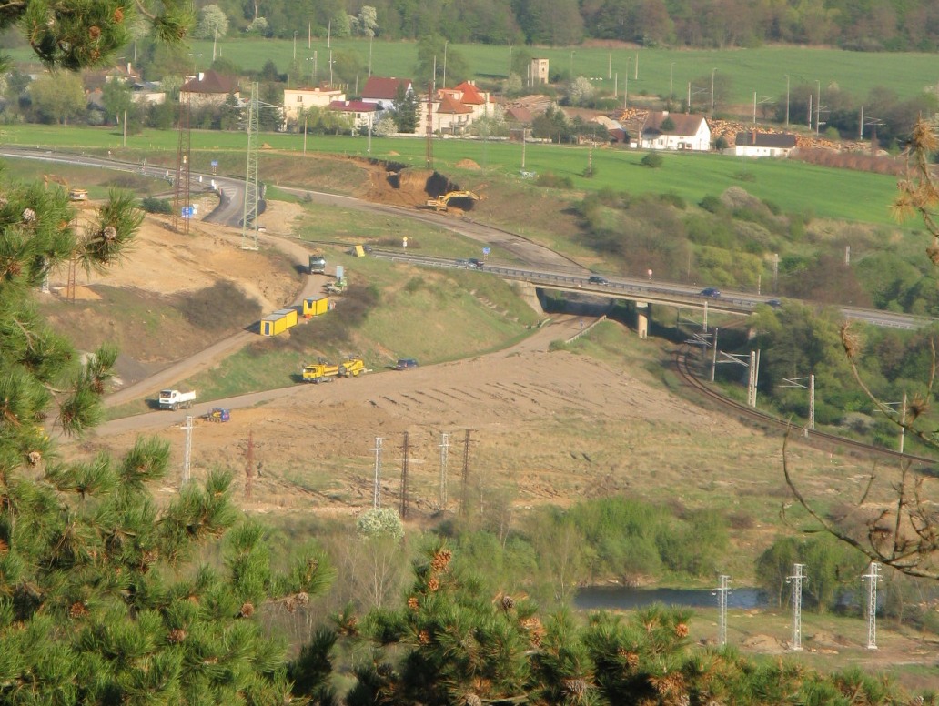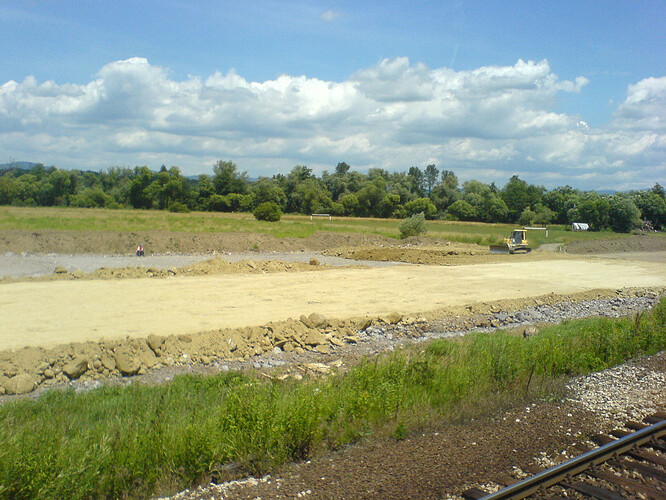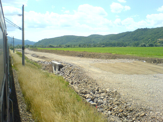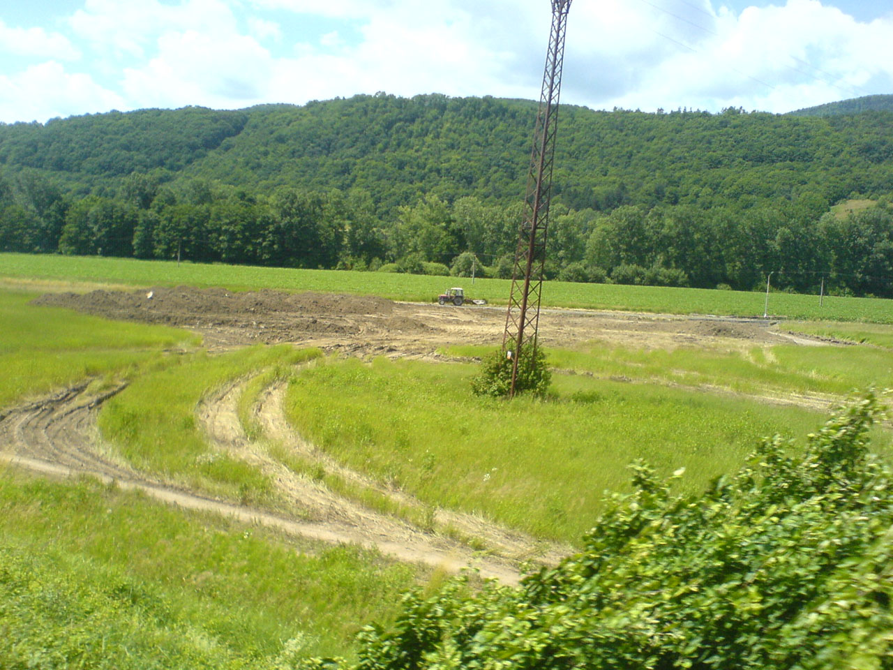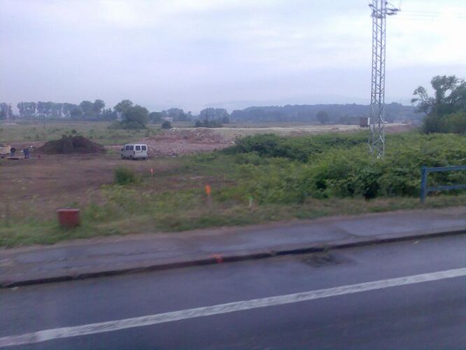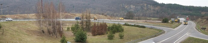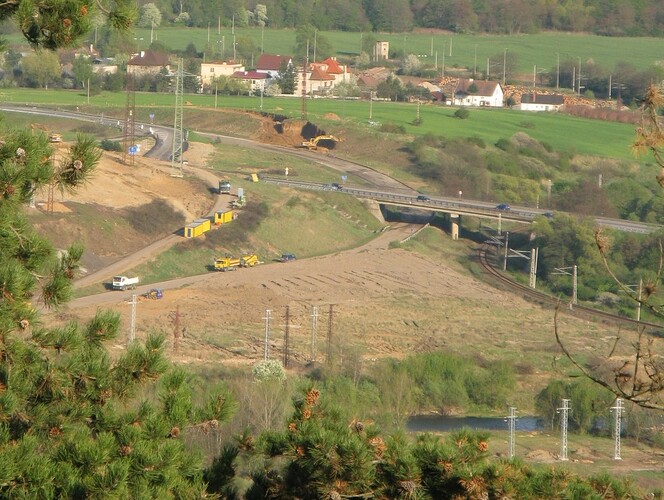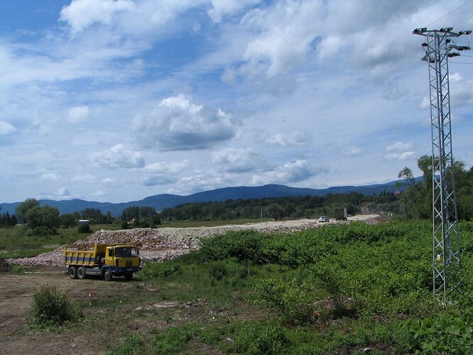 Práce v miestach medzi mostom cez Hron a žel. zastávkou Bzenica. Trasa R1 tu podľa mňa mala viesť viac vľavo, t.j. ďalej od železnice, čím by sa zväčšil polomer zákruty za žel. zastávkou Bzenica. Ale to by kompetentní museli trošku pohnúť rozumom, resp. by im na tom muselo aspoň trošku záležať..