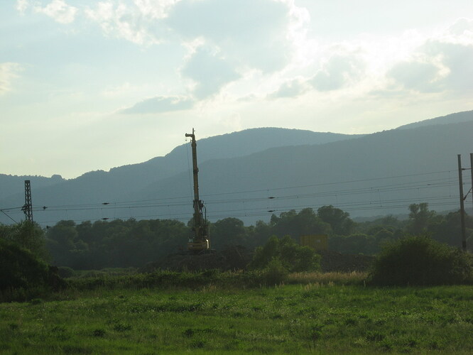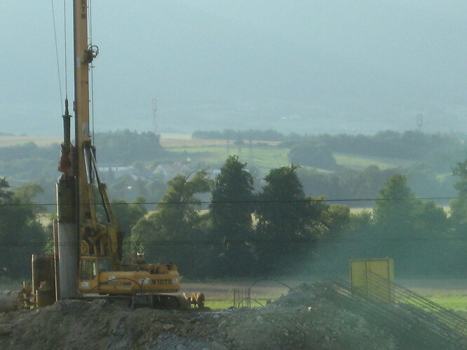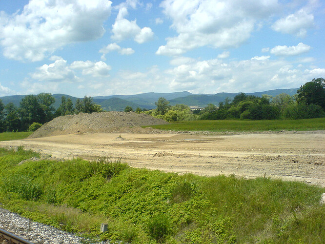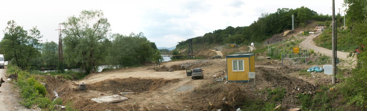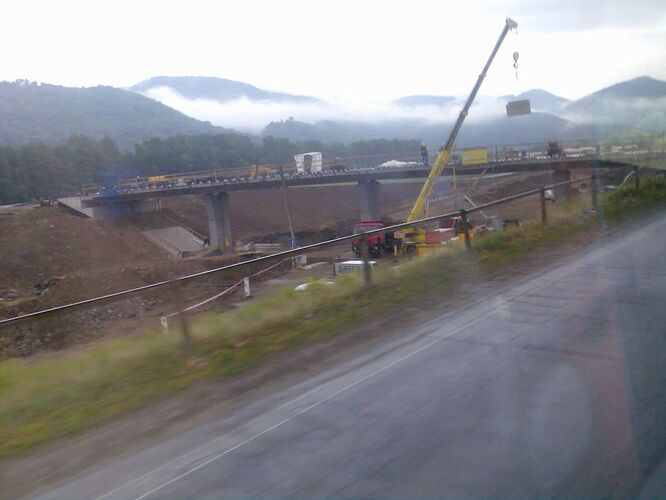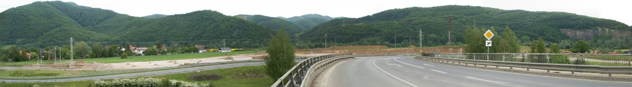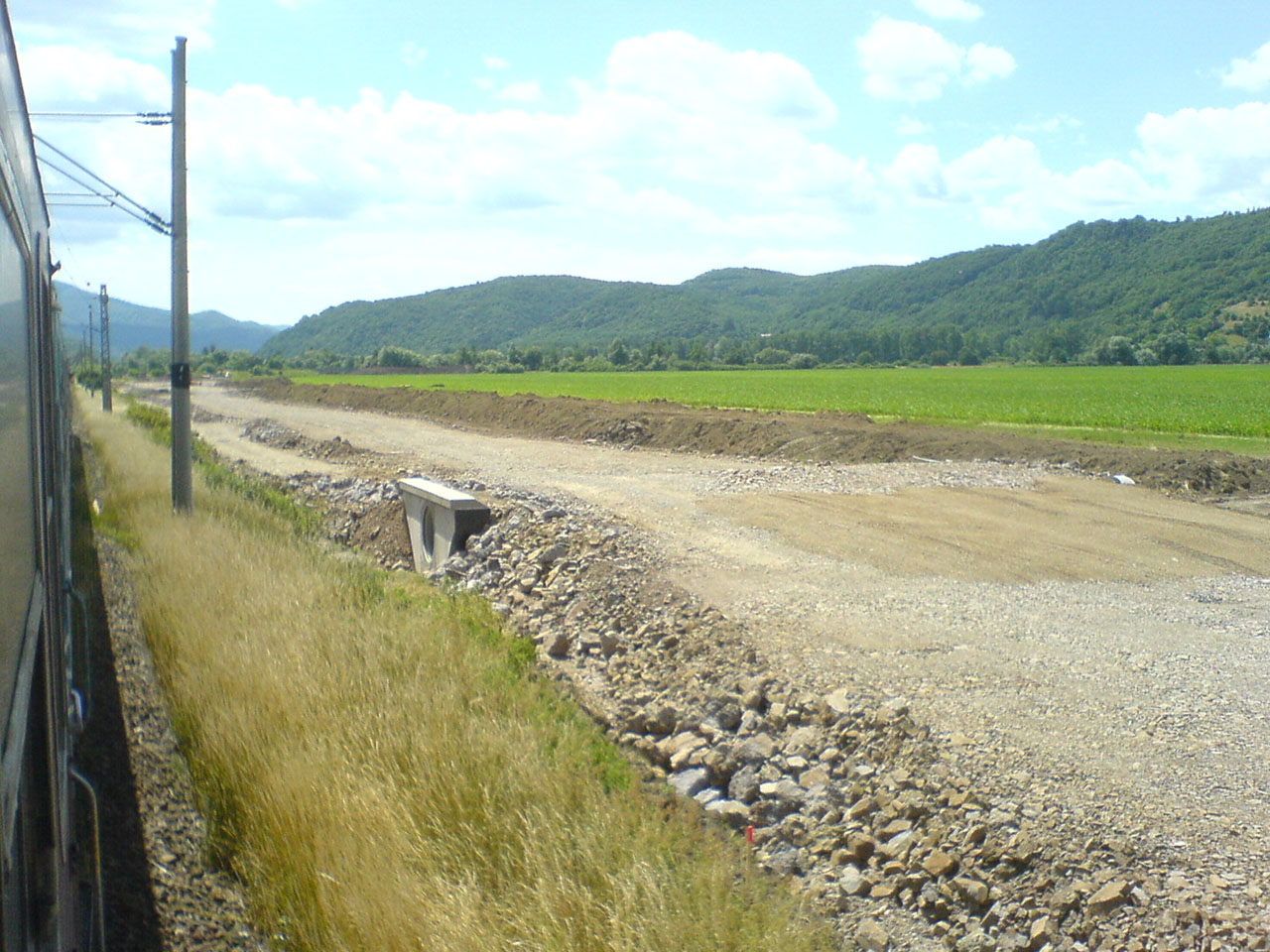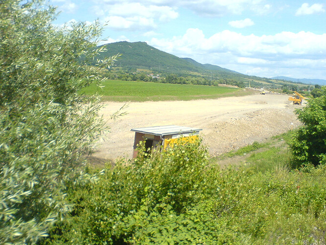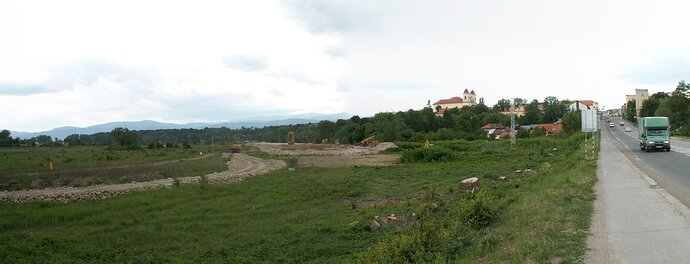 Práce v miestach medzi mostom cez Hron a žel. zastávkou Bzenica. Trasa R1 tu podľa mňa mala viesť viac vľavo, t.j. ďalej od železnice, čím by sa zväčšil polomer zákruty za žel. zastávkou Bzenica. Ale to by kompetentní museli trošku pohnúť rozumom, resp. by im na tom muselo aspoň trošku záležať..