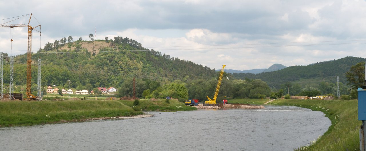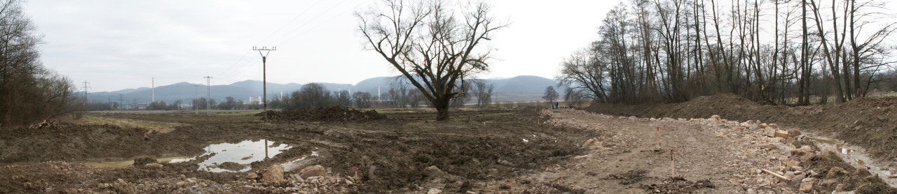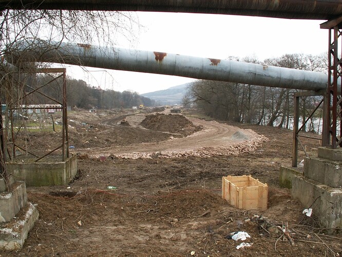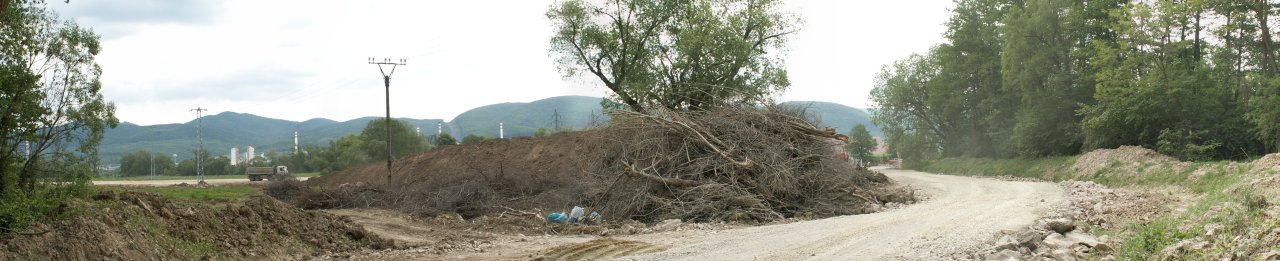 Práce v miestach medzi mostom cez Hron a žel. zastávkou Bzenica