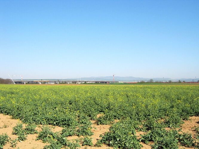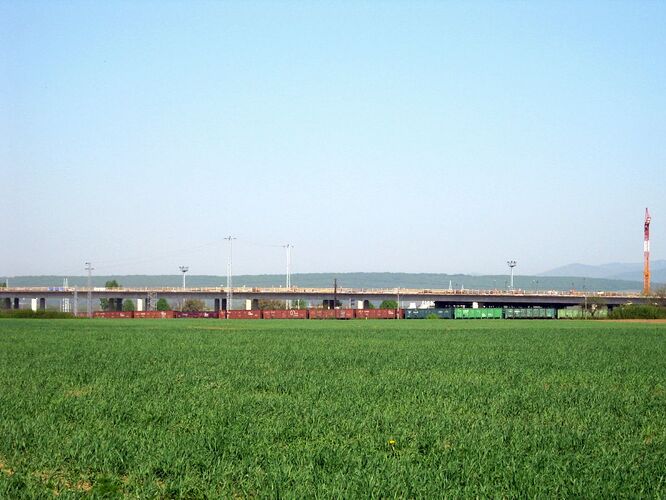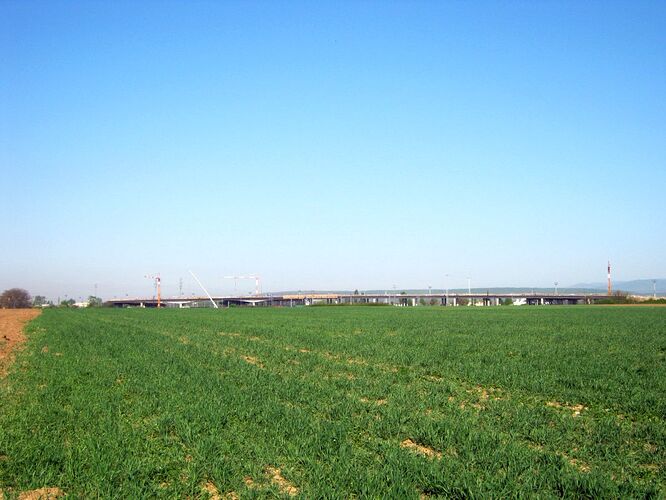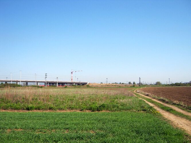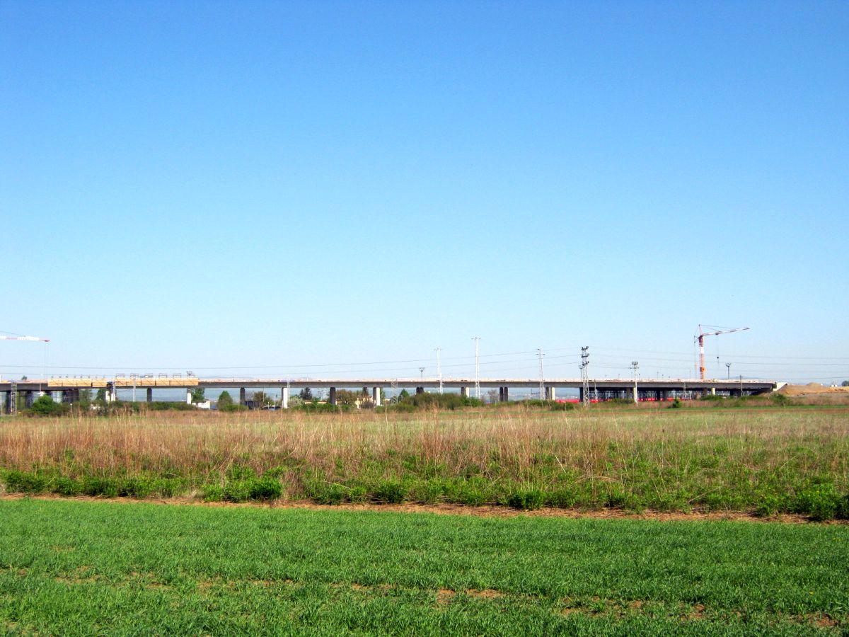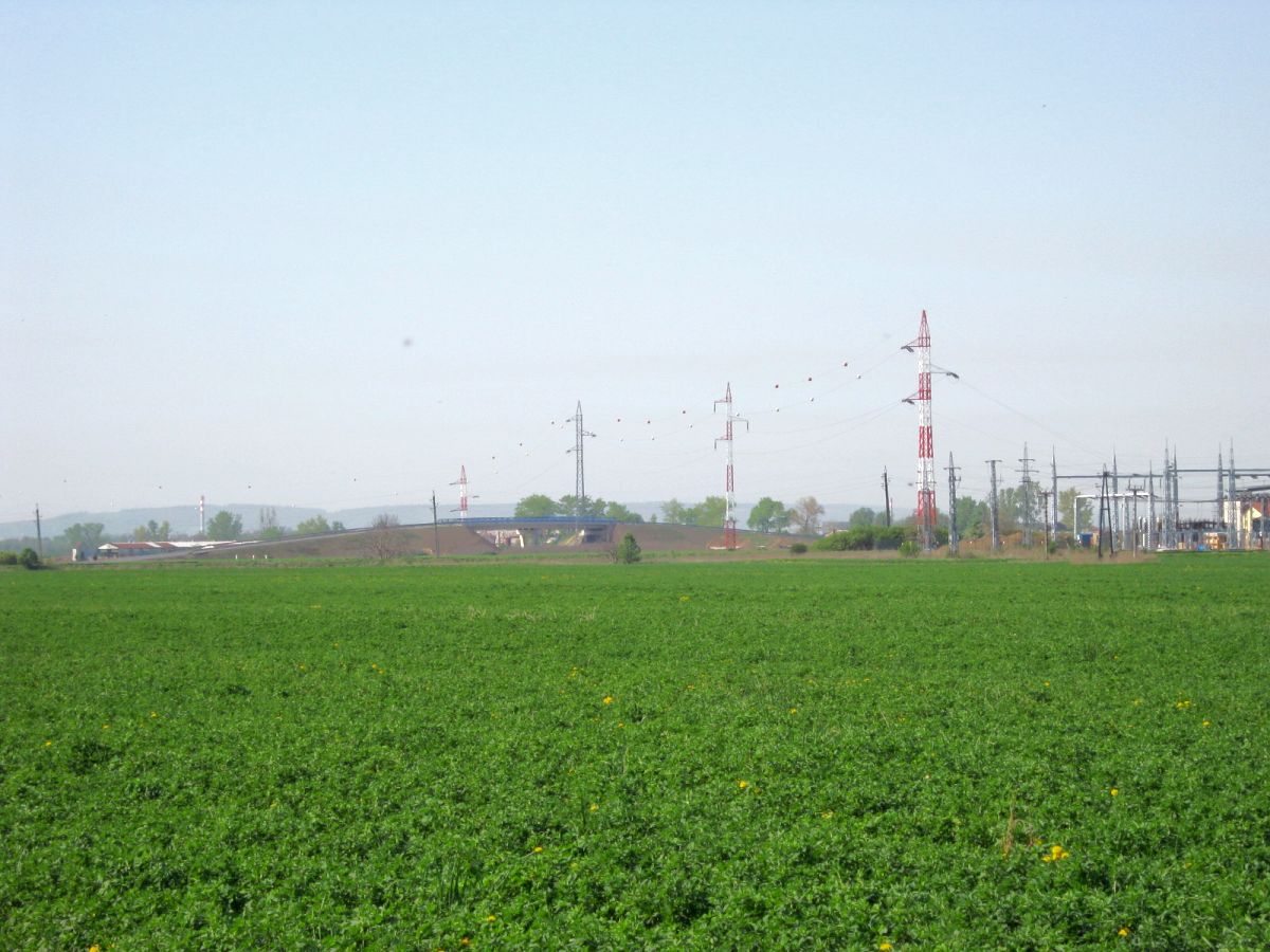 v strede budova VSE, vpravo most na ceste Haniska-Šaca a vľavo most na ceste Haniska-Sokoľany (1.5.2012)