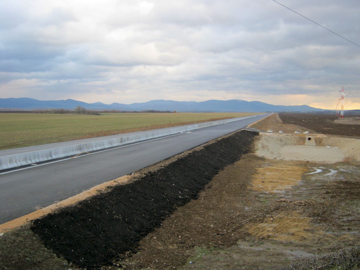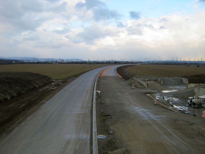 budúca križovatka Košice-Juh, zemné práce končia niekoľko desiatok metrov od I/68, na napojení sa nepracuje