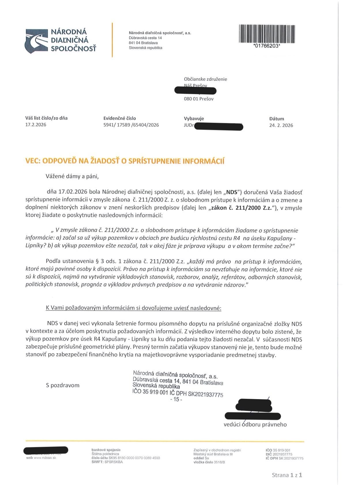 Prakticky to znamená, že na úseky Lipníky - Kuková, Giraltovce - Radoma a Svidník - Rakovčík má byť dodaná DÚR až v polovici roka 2024 s tým, že územné rozhodnutie bude v roku 2025.