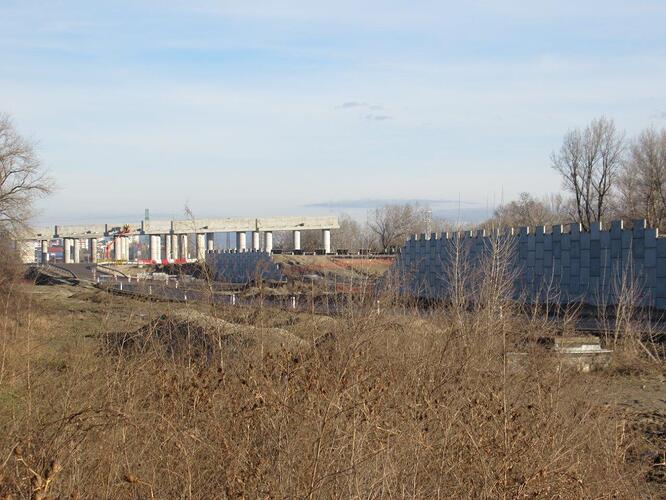Premostenie Malého Dunaja pri vlečke do Slovnaftu. Násyp pred premostením.