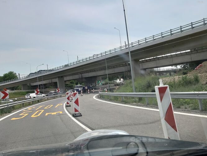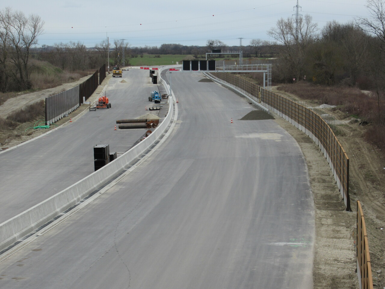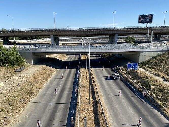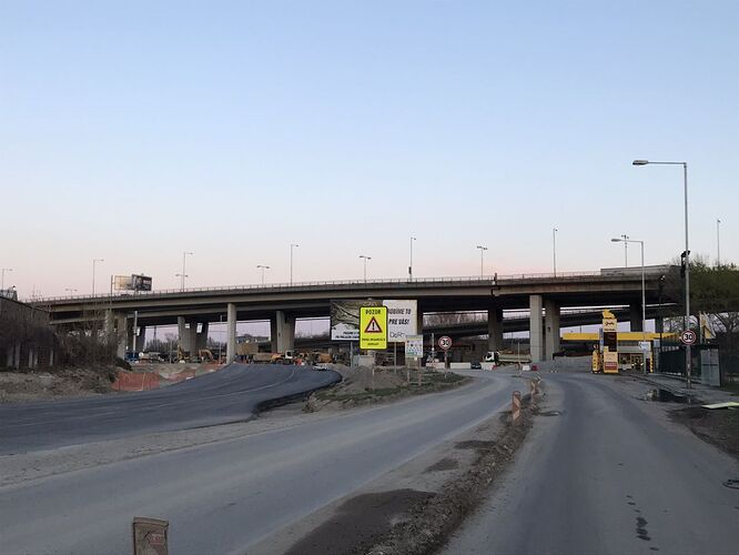 [vľavo rampa Slovanfatská ul resp. R7 - D1 Petržalka, vpravo rampa I/61 Bajkalská - D1 Petržalka -]