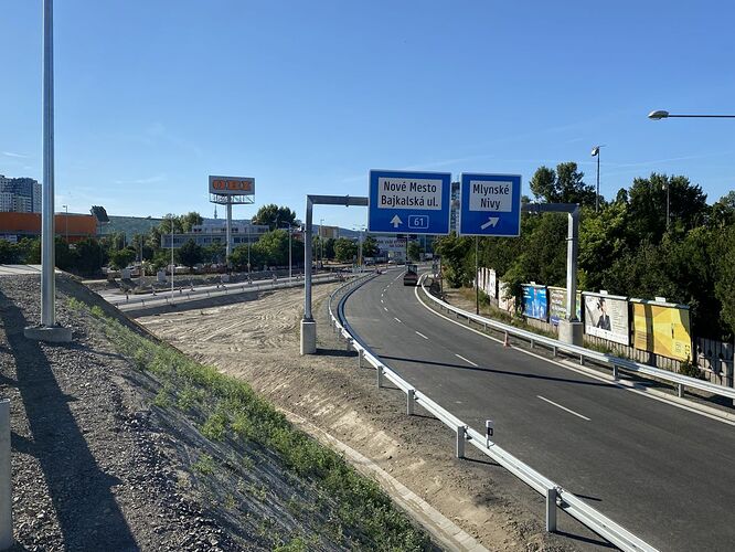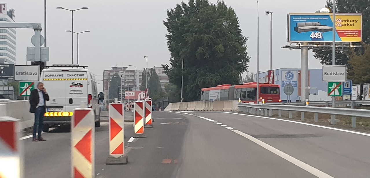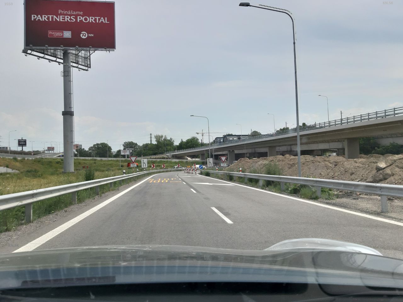 [vľavo zjazd D1 Petržalka - Bajkalská, vpravo Slovnaftská - D1 Petržalka]