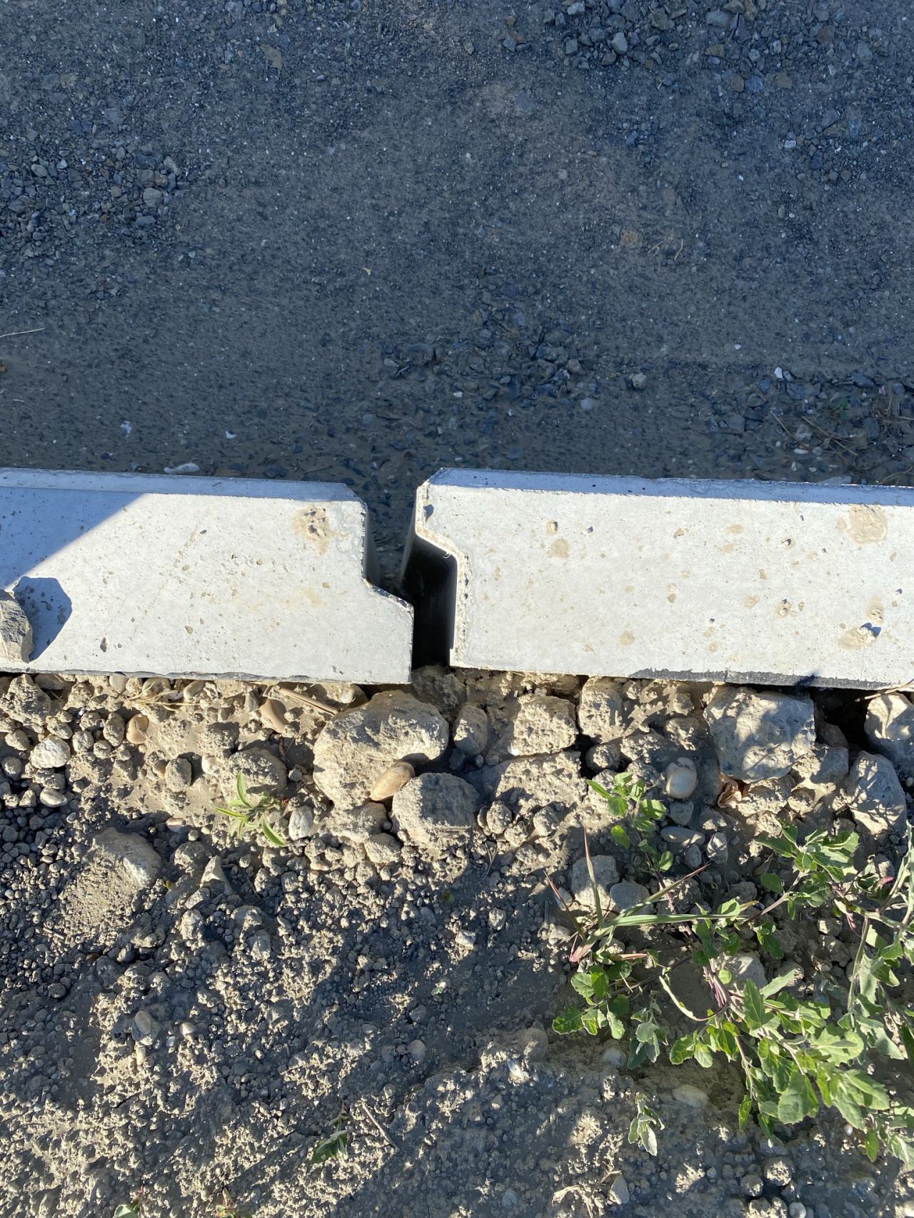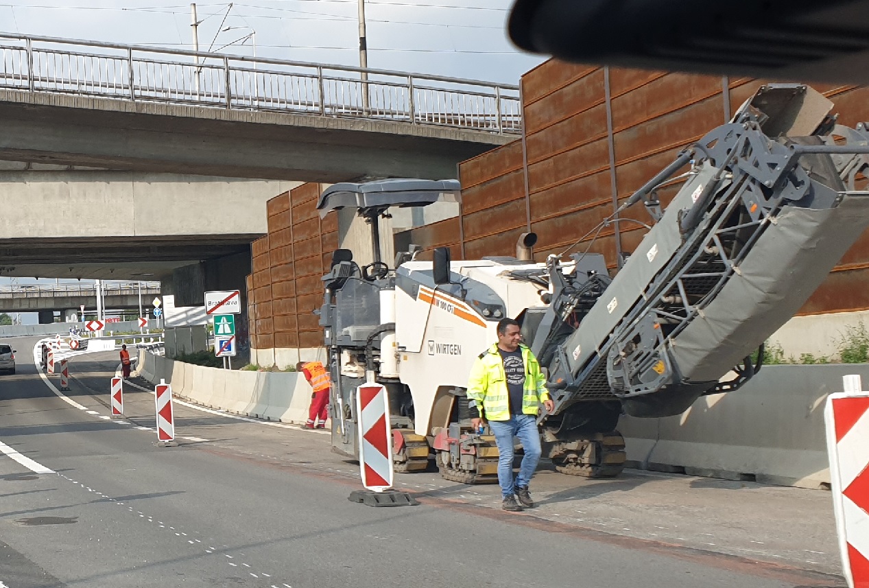 na pravom kraji a aj v strede pruhov sa asfalt rozpadáva