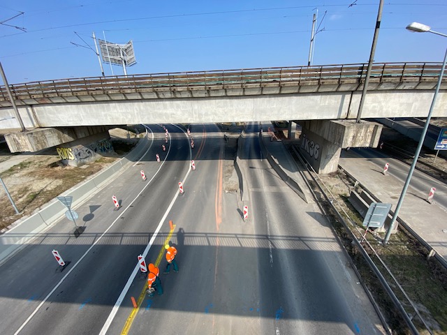 [Koniec Prístavnej ul. a začiatok R7 pod Prístavným mostom 24.3.2020]