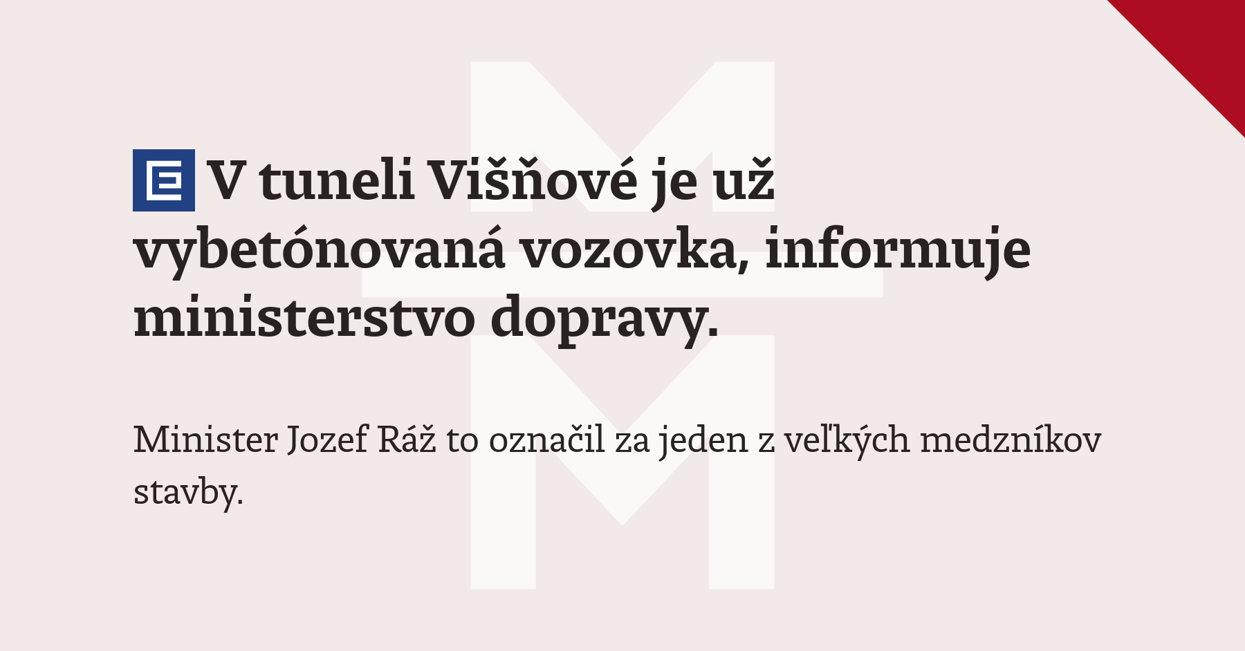 V tuneli Višňové je už vybetónovaná vozovka, informuje ministerstvo dopravy. Minister Jozef Ráž to označil za jeden z veľkých medzníkov stavby. Z vyjadrení štátu však stále nie je jasné, či sa stavbu podarí odovzdať šoférom ešte tento rok.
