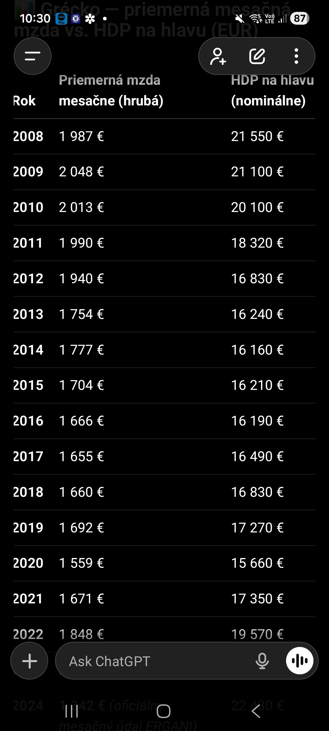 Len doplním k tvojim číslam sj priemernú mzdy a HDP na hlavu. Za 15 rokov sa reálne neposunuli nikam, súčasné čísla sú vyjadrené v peniazoch, ktoré majú tsk polovičnú hodnotu v porovnaní s 2008. Pokles premernej mzdy značí o tom, že bola okrem vysokých dôchodkov aj prezamestnanosť v štátnej správe, kde keď to začali redukovať na normánu (prikázanú) úroveň je vidieť značný pokles ekonomiky aj miezd. Toto čaká aj nás.