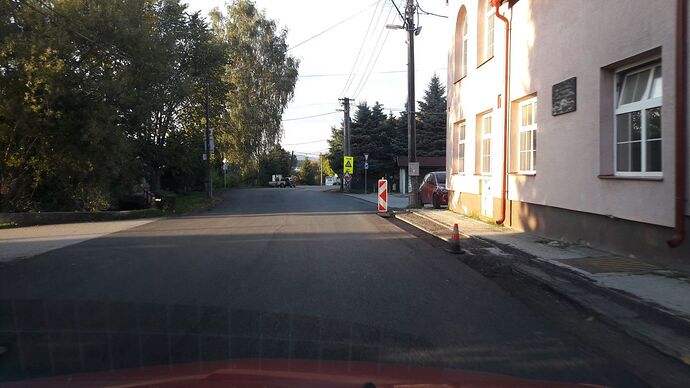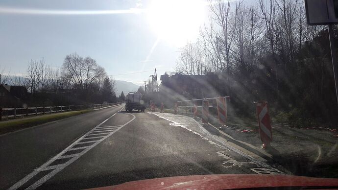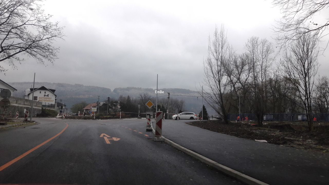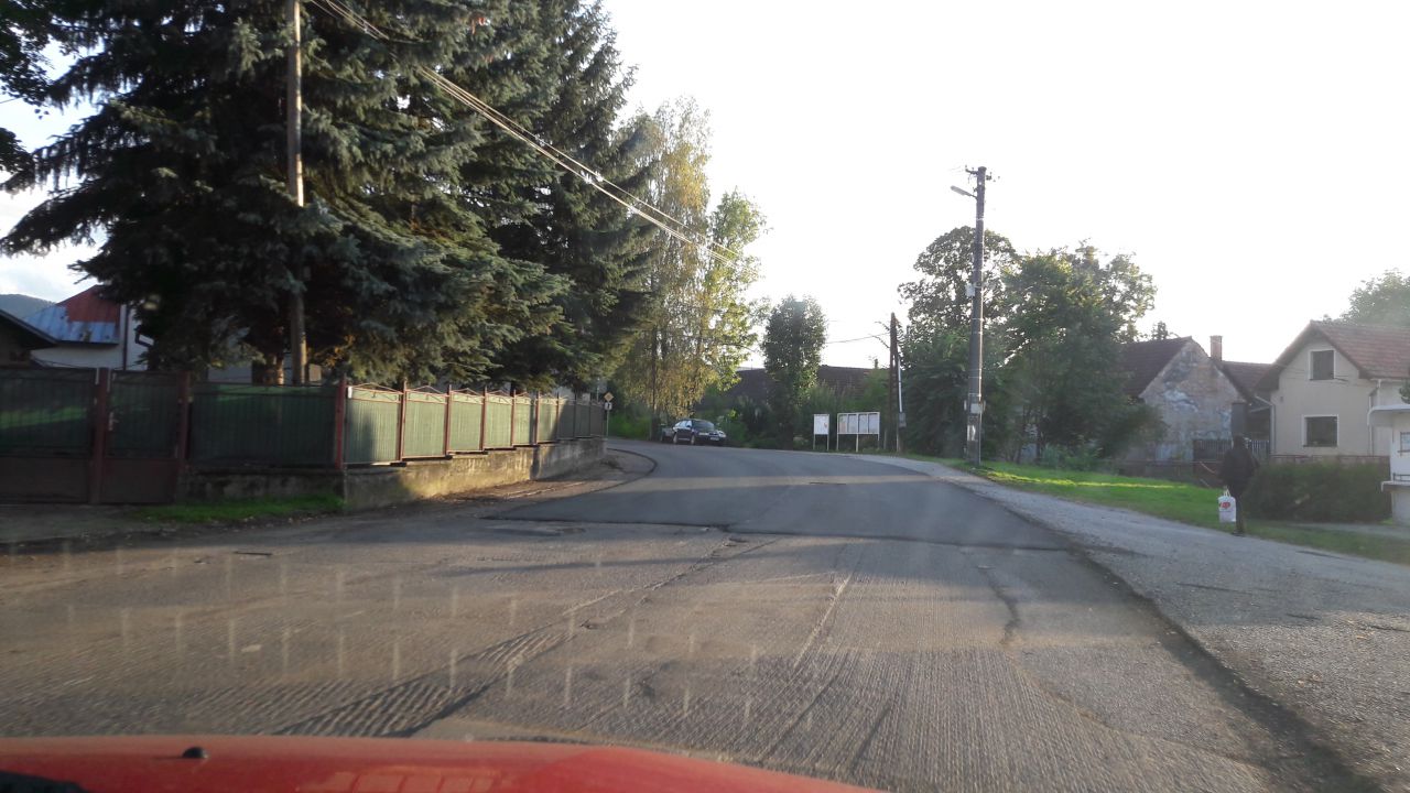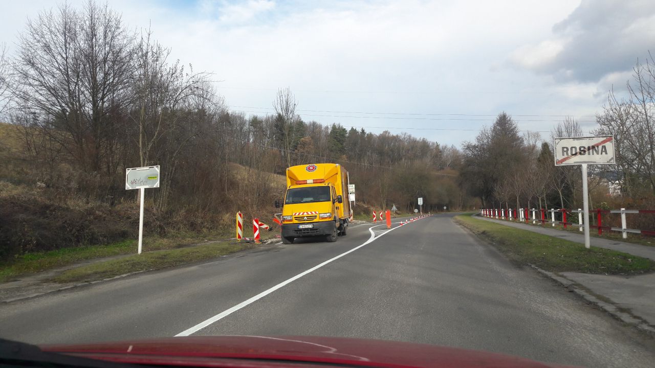 [Vybočenie jazdného pruhu Rosina 23.11.16 -posunuté značky začiatok a koniec obce]